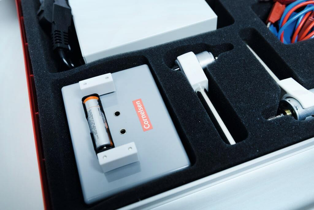 Все элементы хранятся в ячейках из пористого материала в прочном пластиковом чемодане размерами: 54 х 45 х 15 см.