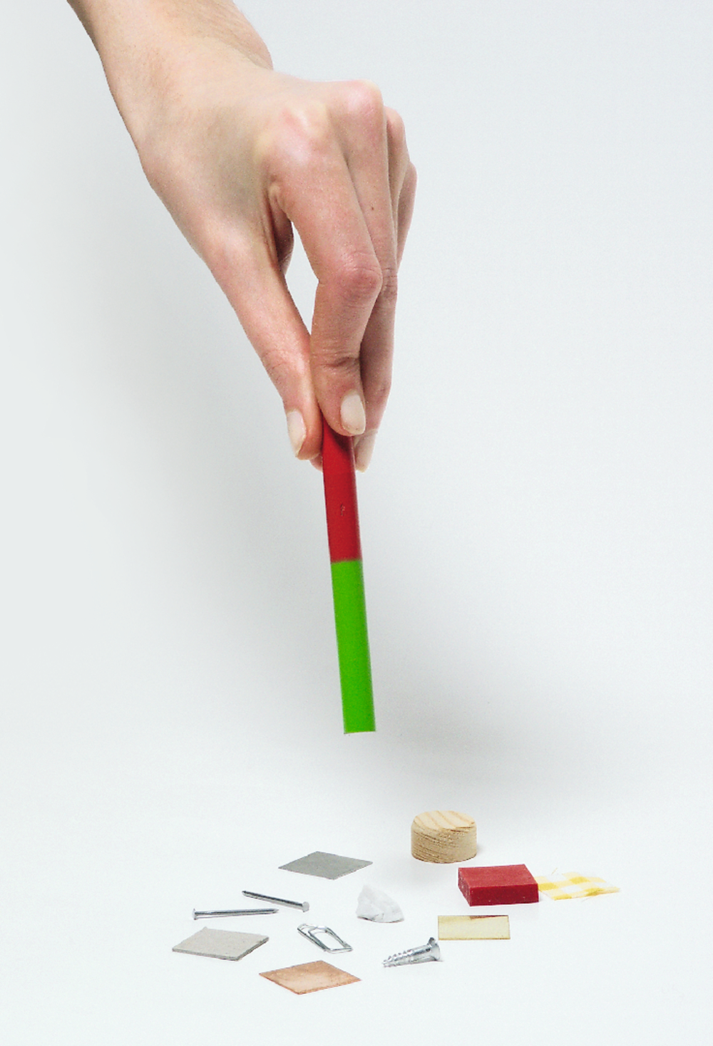 1 × Магнитный стержень AlNiCo, по одной половинке, окрашенной в красный и зеленый цвета