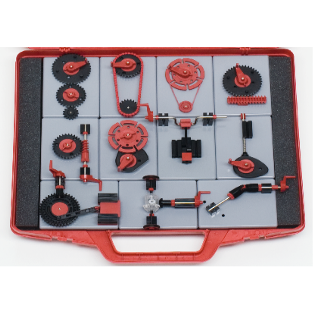 В комплекте (для 1 рабочей группы или для демонстраций)*: модели передач (ременной, цепной, реечно-зубчатой, червячно-зубчатой, кулачковой, прямозубно-зубчатой) и механизмы (возвратно-поступательный, кривошипно-шатунный стопорный, карданный вал и дифференциал).