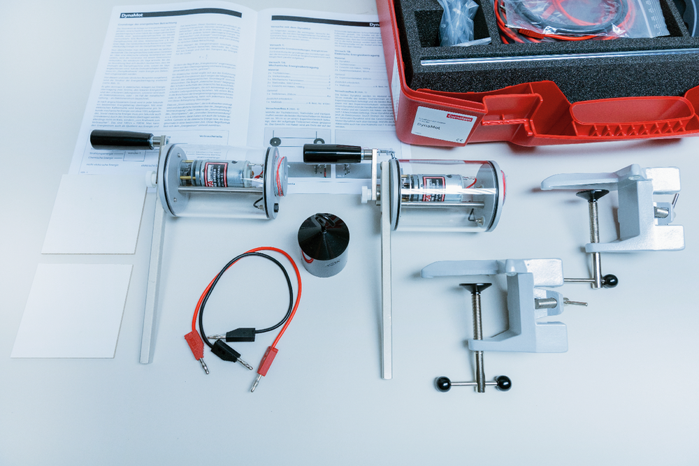 Комплект лабораторного оборудования предназначен для выполнения экспериментов с использованием ручного мотора-генератора DynaMot, который может работать в качестве генератора постоянного тока или как мотор постоянного тока. DynaMot способен заменить батареи или источник питания при выполнении базовых экспериментов по теме "Электричество".