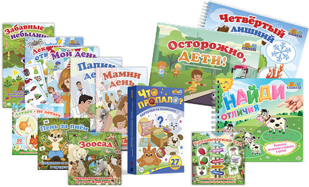 В комплекс входят пособия на знакомые детям темы, которые легко встроить в общеразвивающие занятие. Материалы подойдут для обсуждения социальных ситуаций, обогащения словаря, развития наблюдательности и познавательной деятельности.