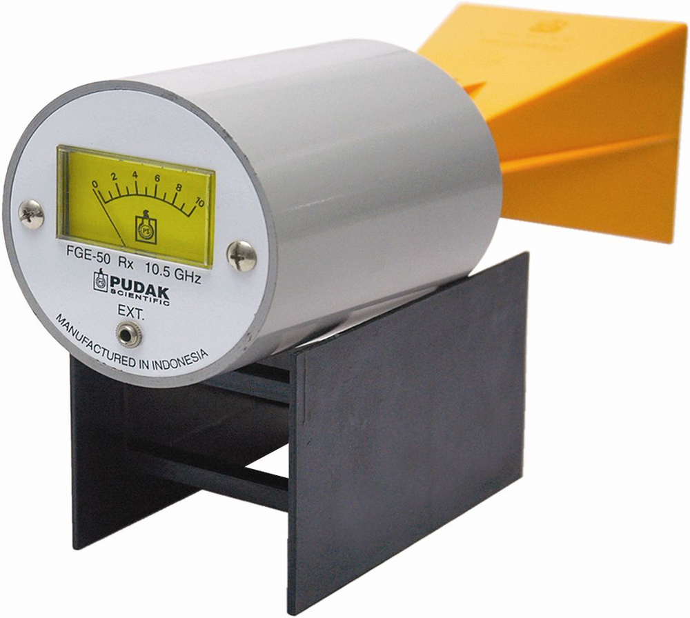 Это прибор, распознающий электромагнитные волны, посылаемые передатчиком. Приемник не оснащен собственным источником питания. Если передатчик посылает электромагнитную волну посредством дипольной рупорной антенны, и приемник рупорной антенны повернут к передатчику антенны, то приемник распознает электромагнитную волну. Об этом свидетельствует смещение стрелки индикатора приема на задней стороне приемника. Степень смещения указывает на уровень мощности приема. Если стрелка смещается между 2-м и 9-м делениями шкалы, уровень мощности передатчика, регистрируемой приемником, может считаться сильным. Если стрелка индикатора приема смещается между 0-м и 2-м делениями, уровень мощности низкий.