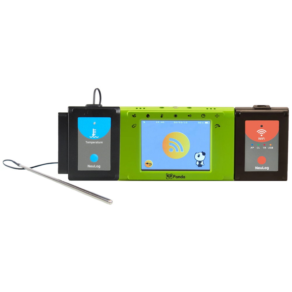 Цифровой измерительный модуль (мультидатчик) PANDA представляет собой автономную, полностью готовую к использованию мобильную естественнонаучную лабораторию с цветным сенсорным дисплеем, процессором, памятью, аккумуляторной батареей и 9-ю встроенными цифровыми датчиками: температура окружающей среды, свет, звук, барометр, высота над уровнем моря, влажность, точка росы, ускорение, магнитное поле. Мобильная лаборатория PANDA специально разработана для начальной школы и дошкольного образования, учитывает психофизиологические особенности детей дошкольного и младшего школьного возраста, может успешно использоваться в рамках учебной, внеурочной, проектной и исследовательской деятельности, как в классе, так и вне помещения. Модуль PANDA интегрируется со всей линейкой цифровых измерительных модулей PROLog, поэтому комплект может быть дополнен для расширения потребительских возможностей. В состав комплекта включен ЦИМ PROLog "Температура", позволяющий измерять температуру жидкостей, сыпучих сред и других материалов.