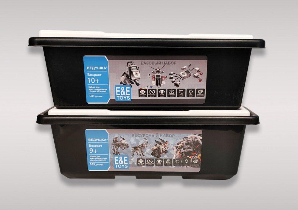 Комплект для занятий робототехникой с пластиковыми боксами для хранения деталей Ведушка (базовый набор А45544-00 + ресурсный А45560-00)