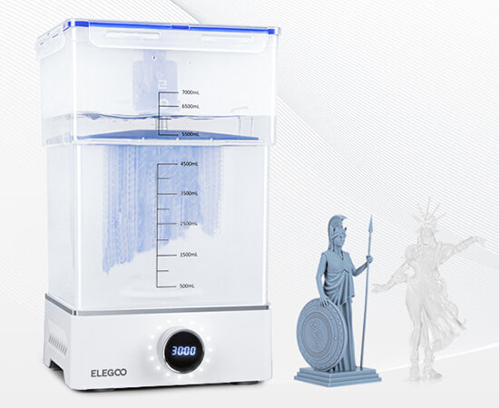 Большой герметичный резервуар объемом 7 000 мл позволяет выполнять широкий спектр работ по очистке как больших единичных моделей, так и партии небольших изделий. Эта функция значительно экономит время и повышает производительность.