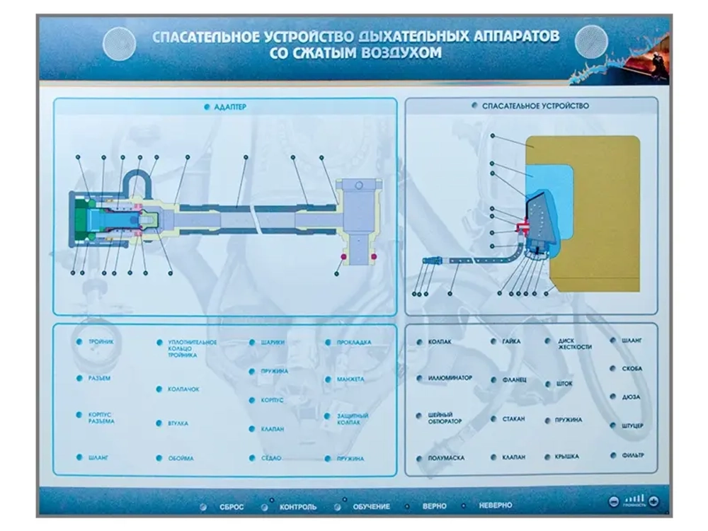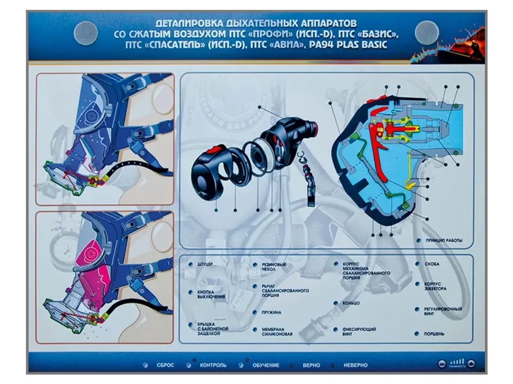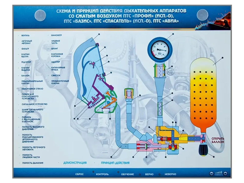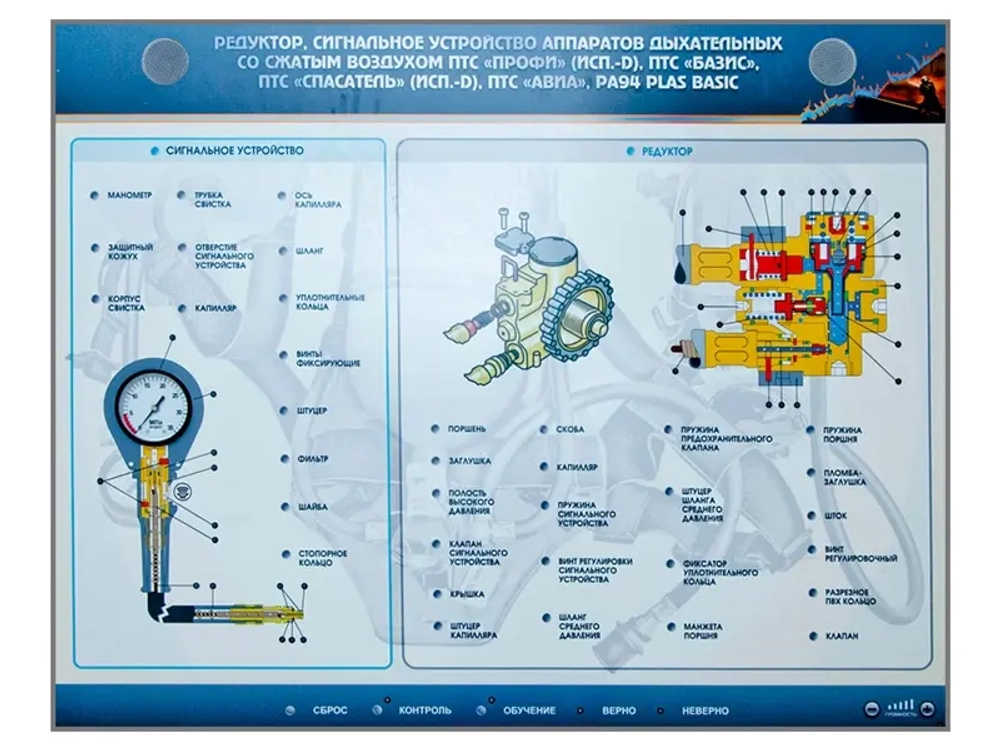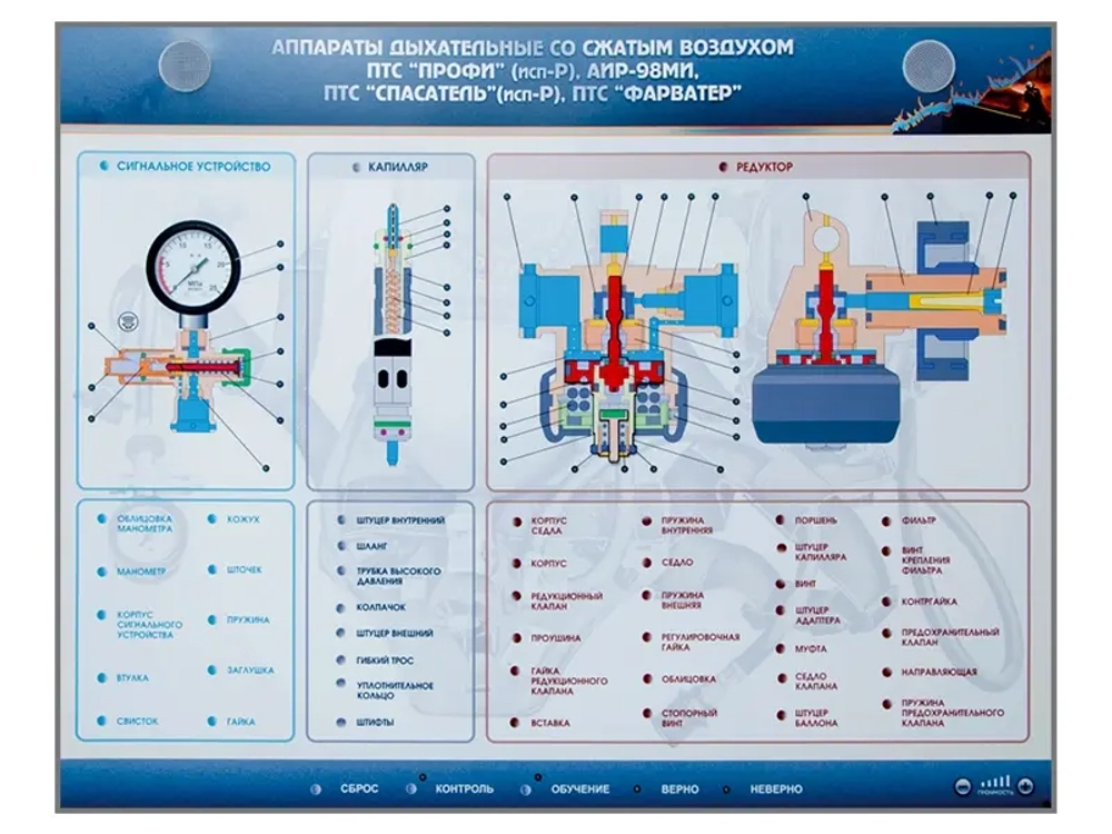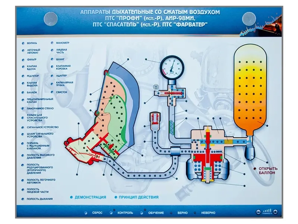 Комплект электромеханических стендов "Дыхательные аппараты со сжатым воздухом" интегрированные в секционно-кассетный презентационный модуль ✅