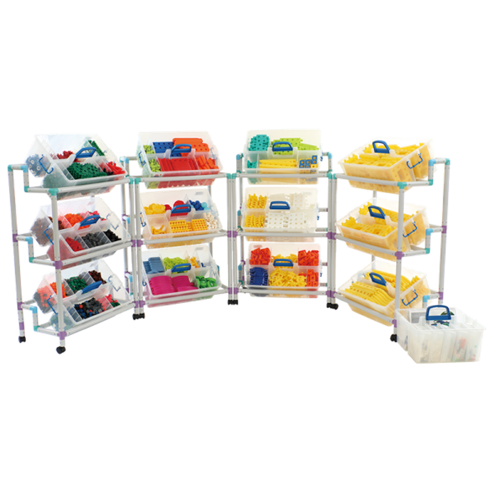 Система хранения: Включает контейнеры и стойки для размещения готовых проектов и работ учащихся.
