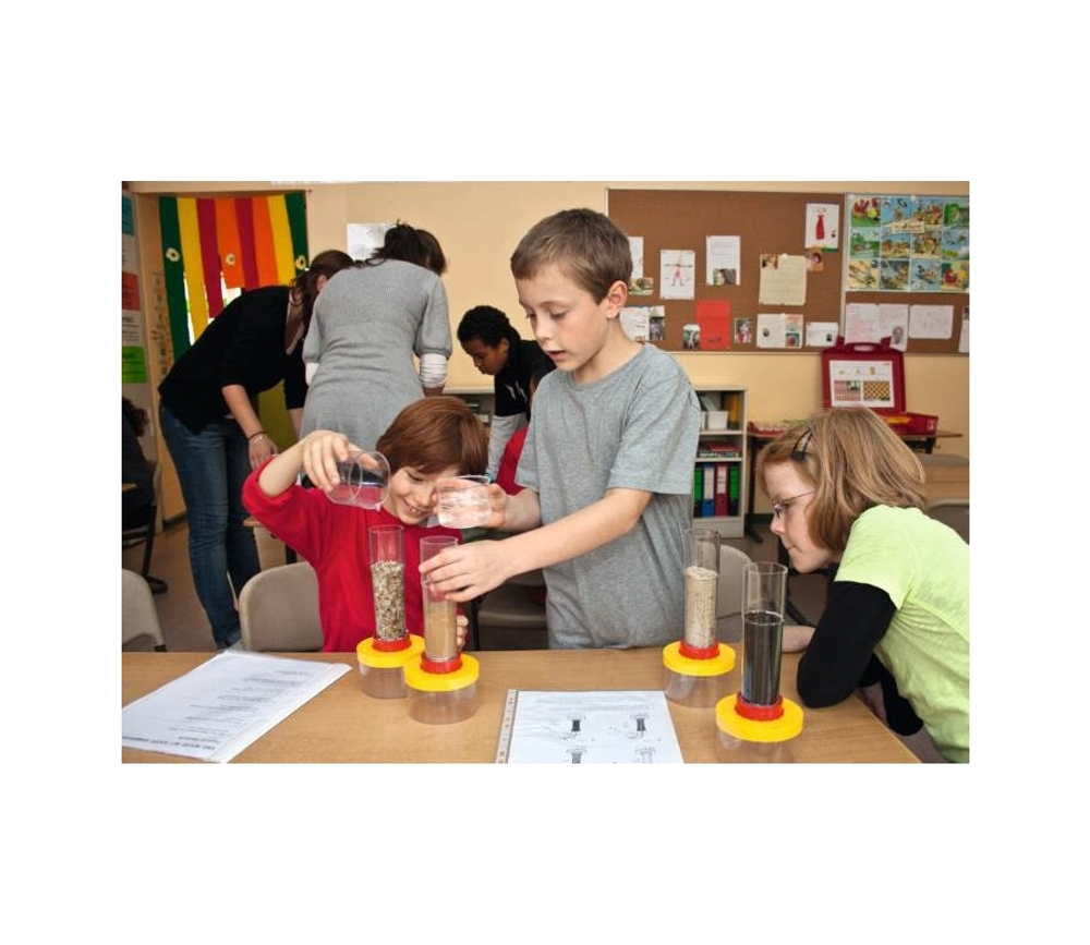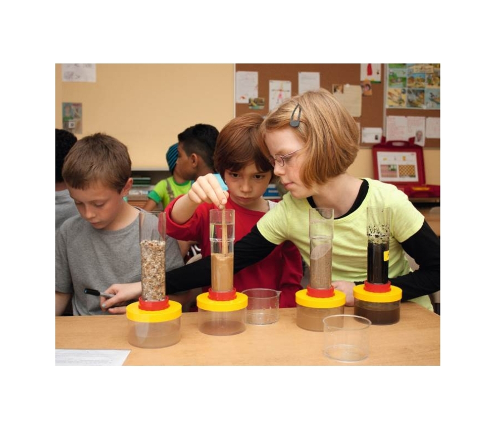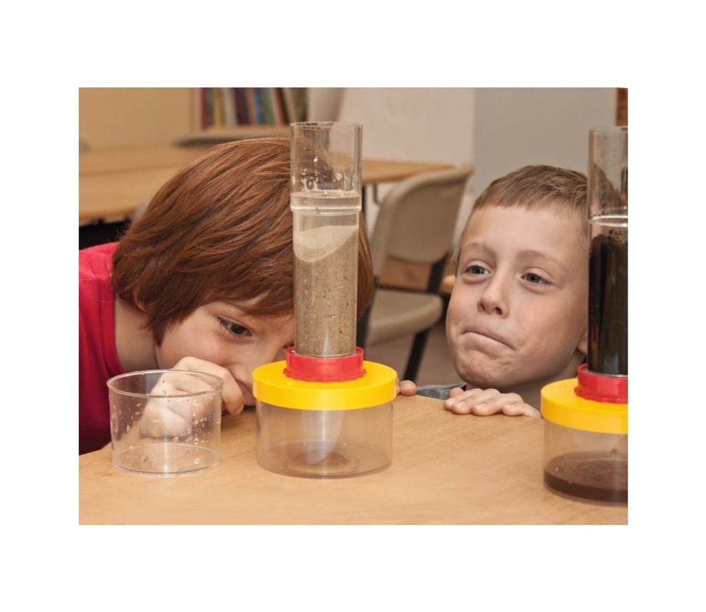Комплект позволяет исследовать вопросы, связанные с добычей и очисткой грунтовых вод; обнаружить, что гравийно-песчаный фильтр удерживает твердые частицы, содержащиеся в воде, но пропускает соли, нефть и примеси моющих веществ; обсудить экологические проблемы, связанные с загрязнением воды, и пути их решения.
