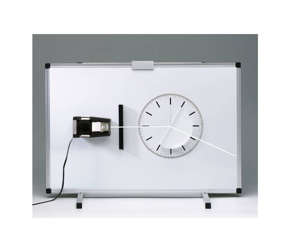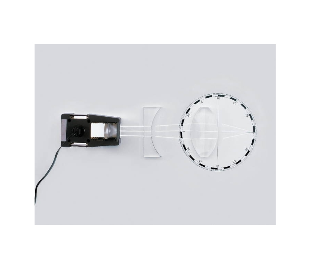 В комплект лабораторного оборудования входит набор оптических элементов для демонстрации на стальной доске основных законов прохождения света через линзы и призмы, отражения света от зеркал оптических приборов и коррекции зрения. Все модели выполнены из прозрачного органического стекла с магнитной подложкой на обратной стороне.