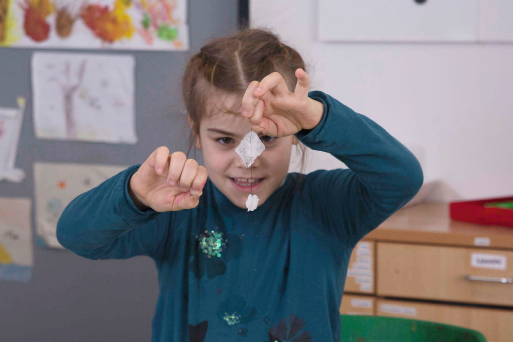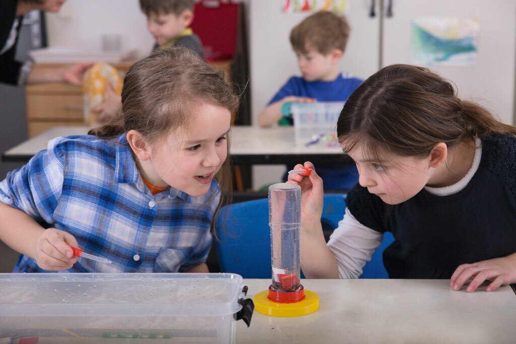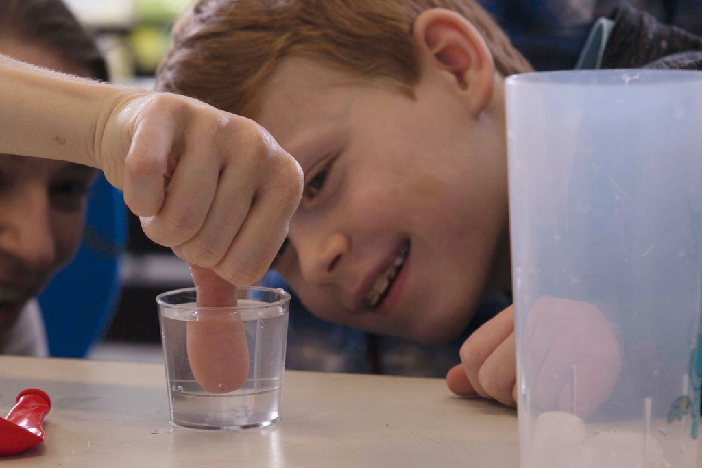 Дети узнают например сколько капель воды помещается на монете, прежде чем они разольются, или почему кубик льда тает, когда посыпают его солью? Покажите ученику, как растения "пьют" или как лягушка движется в воде.