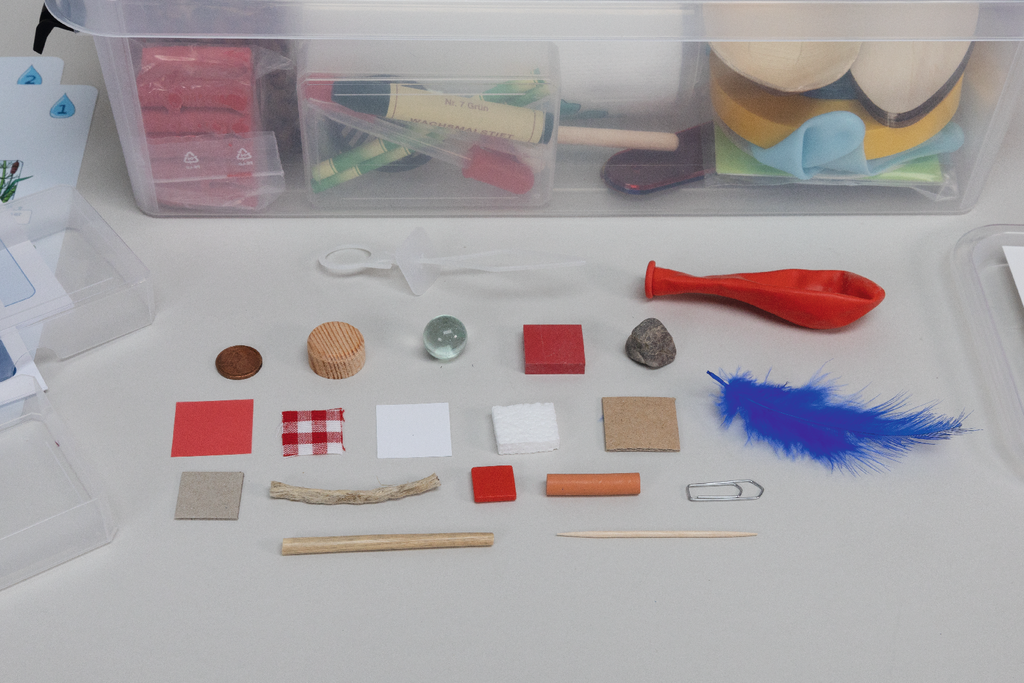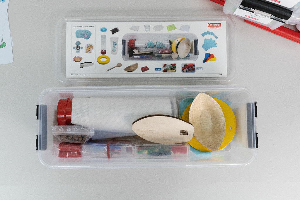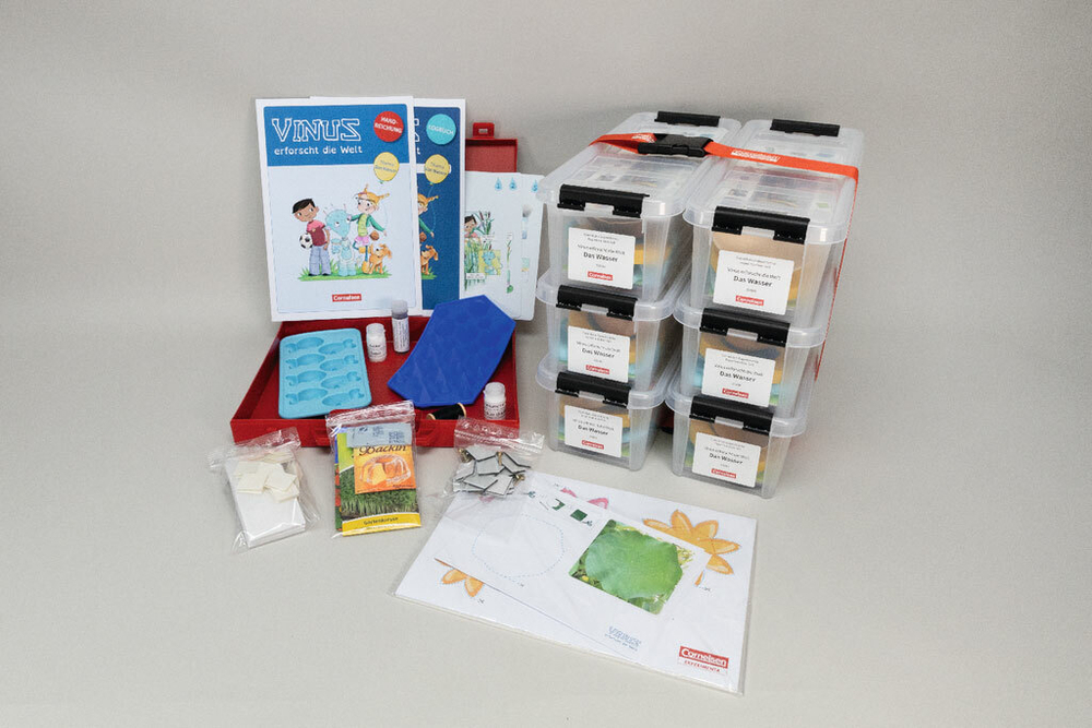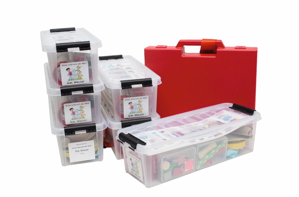 В наборе состоящем из 6 контейнеров вы найдете все, чтобы решить именно такие вопросы. Захватывающий экспериментальный материал включает в себя, например, перепончатые крылья, которые испытывают сопротивление воды, картезианские дайверы, которые показывают плавание у рыб с помощью плавательного пузыря или настурции, чтобы испытать сенсационный эффект лотоса и т.д.