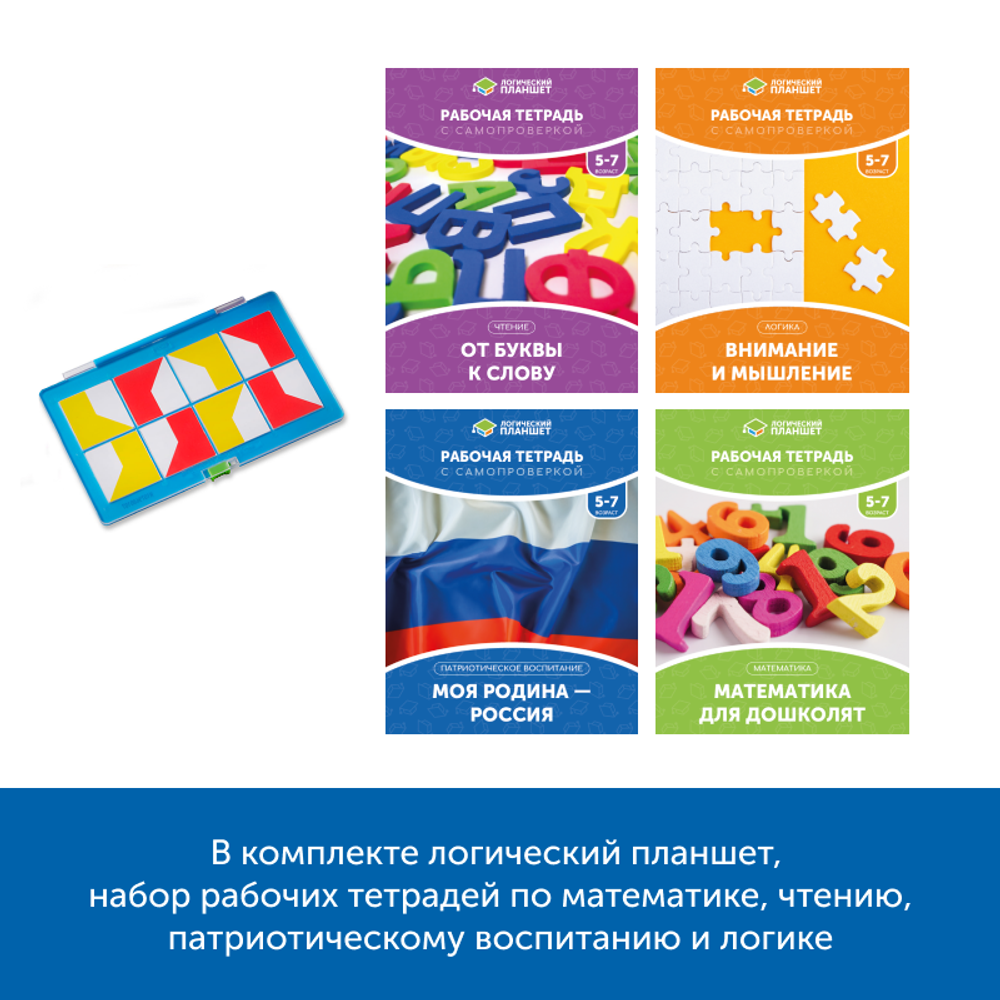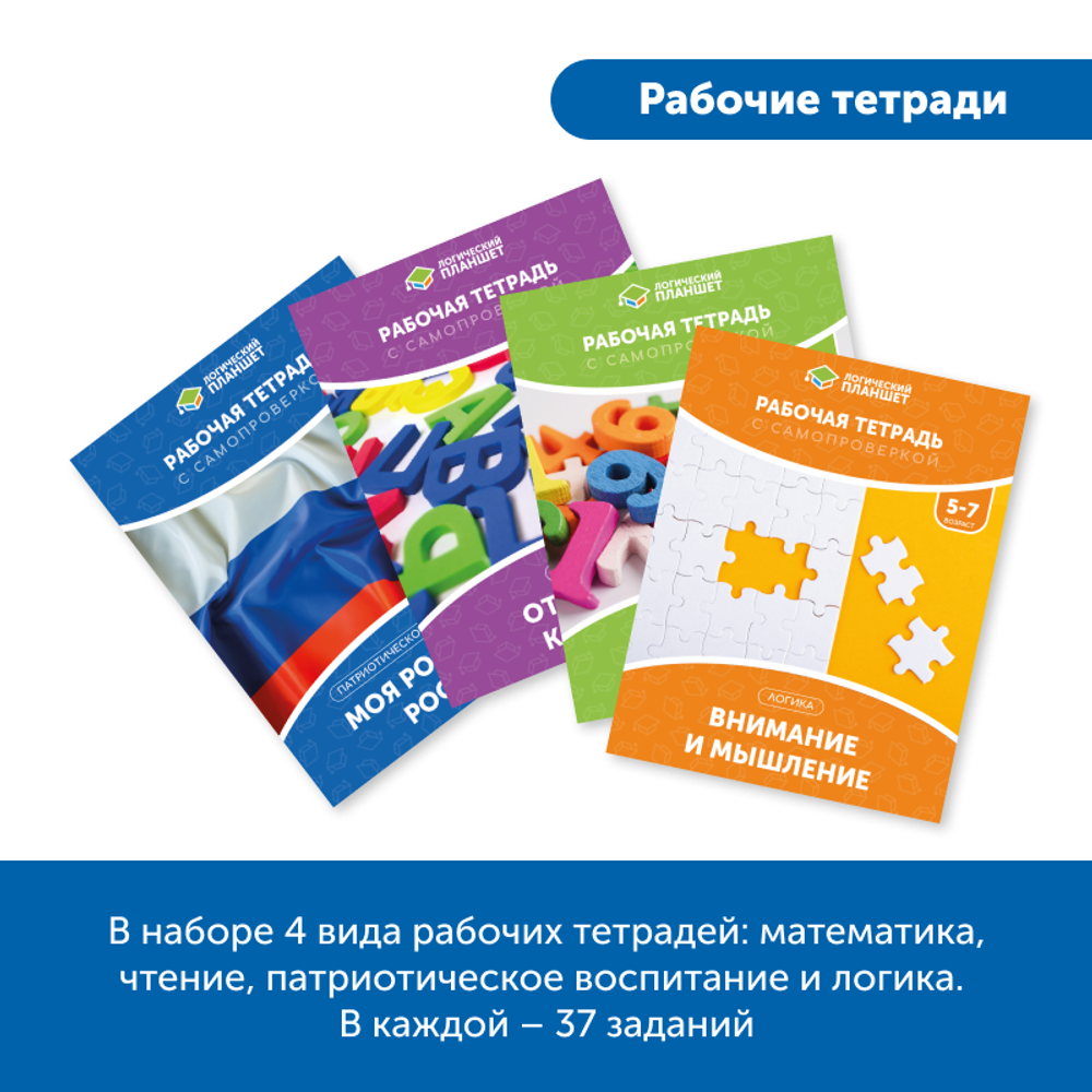 Интерактивный тренажер «Логический планшет» с самопроверкой подходит для отработки базовых навыков по математике, чтению, патриотическому воспитанию и логике.
