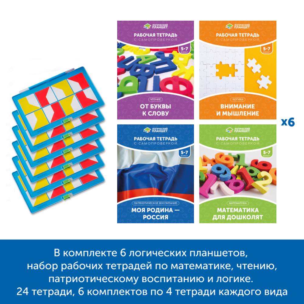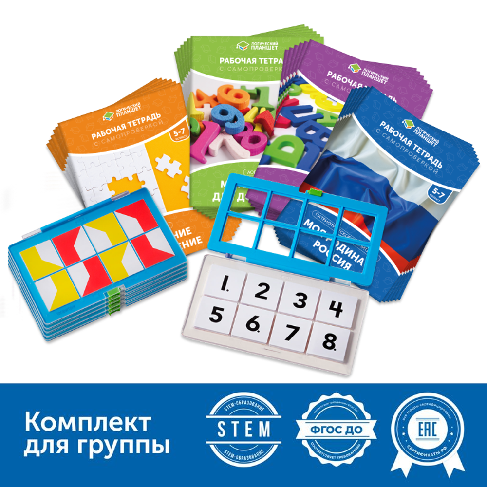 Интерактивный тренажер «Логический планшет» с самопроверкой подходит для отработки базовых навыков по математике, чтению, патриотическому воспитанию и логике.