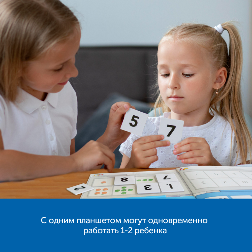 Планшет работает по принципу соотнесения вопроса и ответа. Положите числовые плитки на правильные ответы, а затем проверьте себя – переверните планшет и сравните узор с образцом.