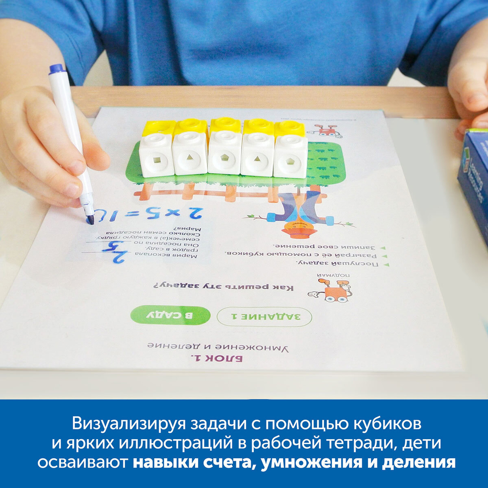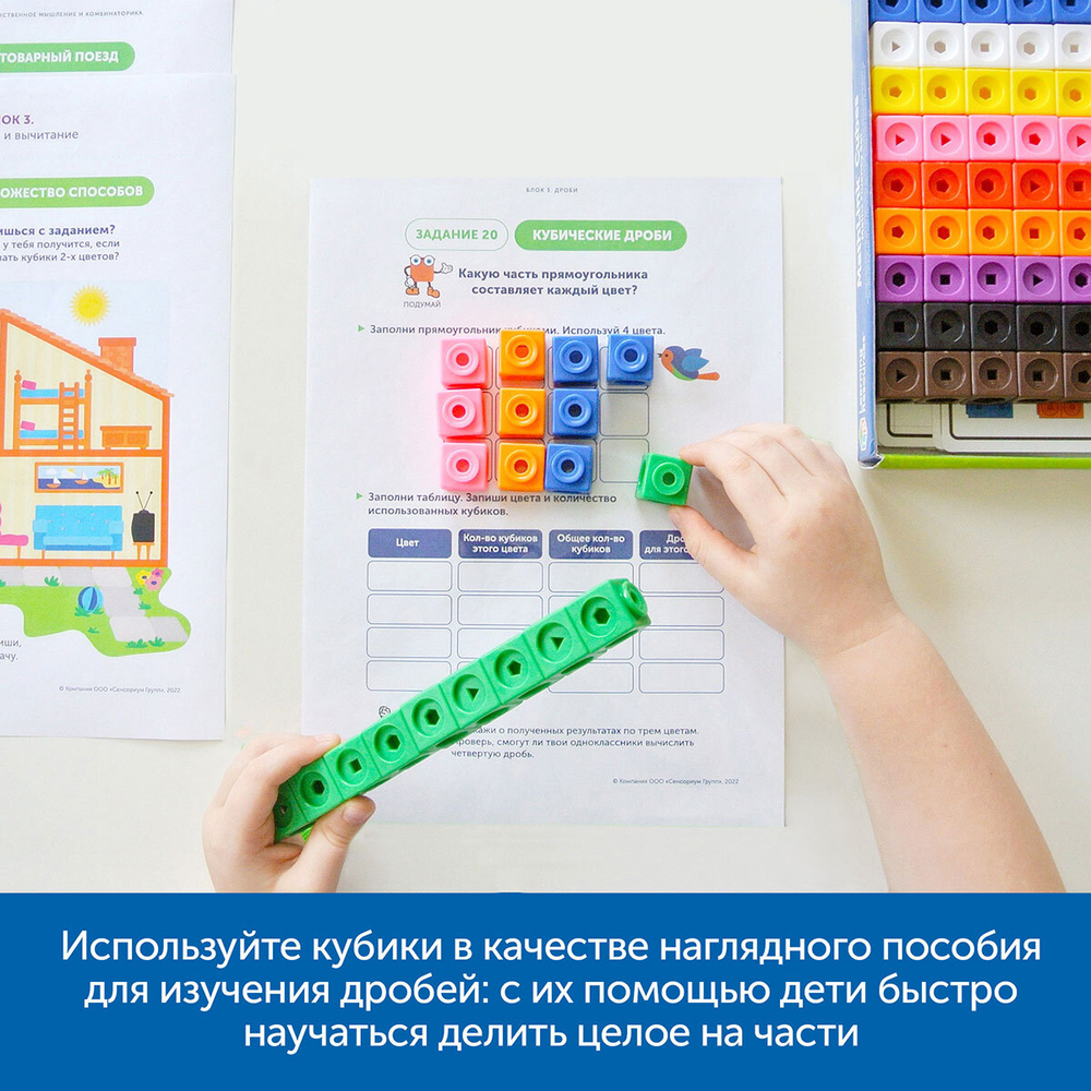 Комплект позволяет детям от 6 лет освоить базовые математические навыки с помощью полифункционального конструктора.