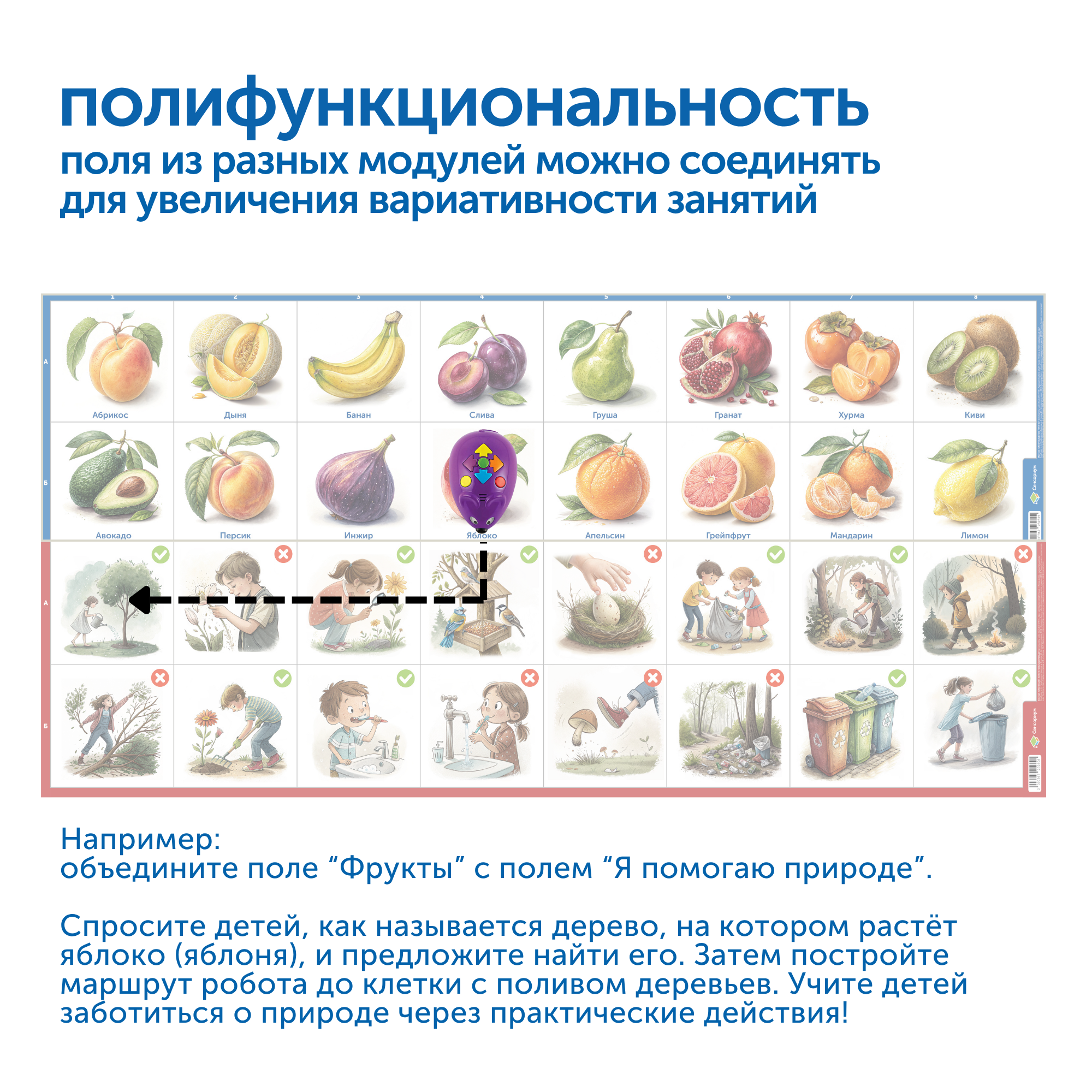 Этот уникальный комплект повышает престиж профессий агронома и фермера, воспитывает интерес к труду на земле, формирует знания о цепочке производства продуктов, развивает инженерное мышление через интерактивные задания