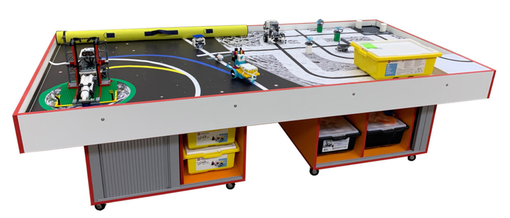 Комплект полей «Старт во вселенную» подходит для организации образовательного процесса, тестирования роботов, тренировок и проведения соревнований. Стол быстро модифицируется под разные задачи. Имеет места для хранения конструкторов и соревновательных элементов.