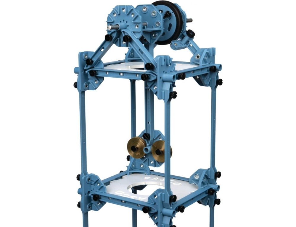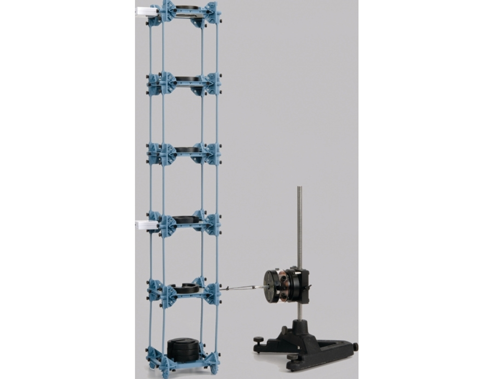 Комплект "Резонанс в башне" PASCO предназначен для изучения колебания в различных резонансных режимах с помощью механического генератора волн, колебания с которого передаётся на башню, к которому прикреплен шнур.