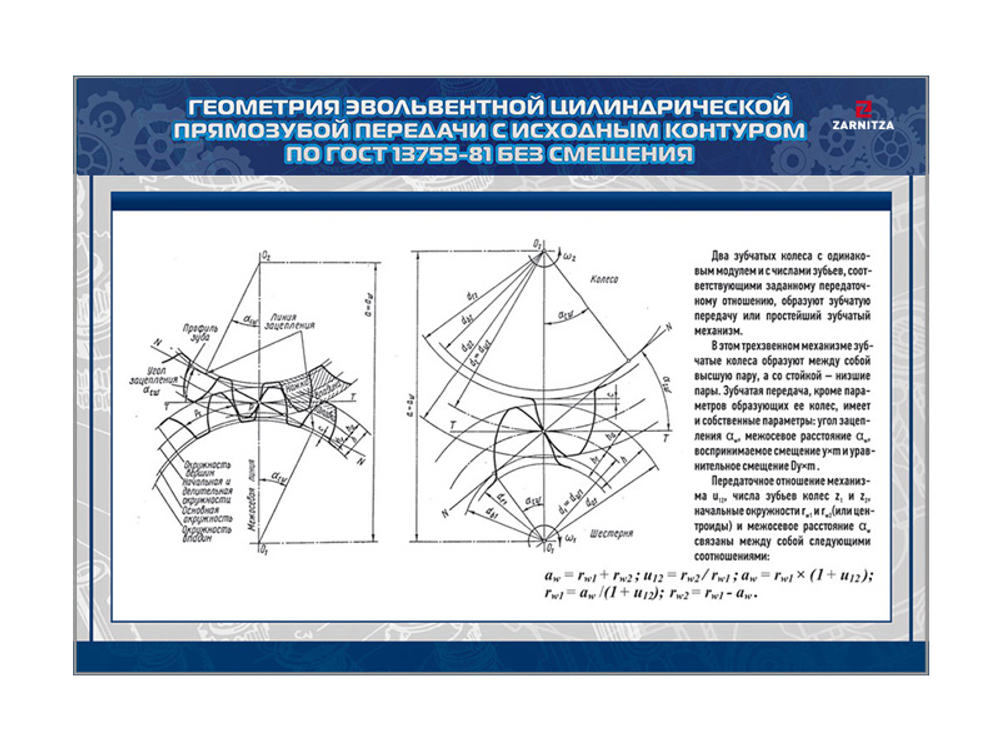 Геометрия эвольвентной цилиндрической прямозубой передачи с исходным контуром по ГОСТ 13755-2015 без смещения