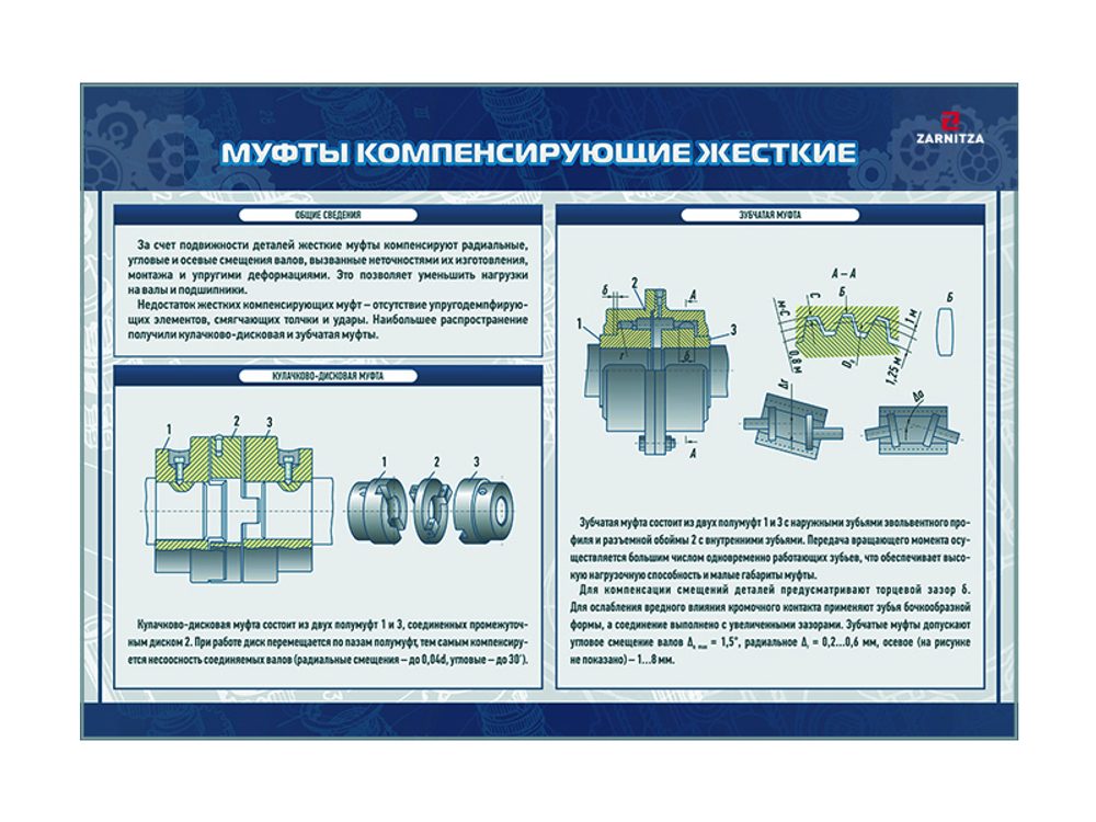 Комплект "Детали машин и основы конструирования" включает в себя стенды, являющиеся наглядным пособием, содержащие графический материал, который информирует о разделах курса по теории деталей машин и основ конструирования.