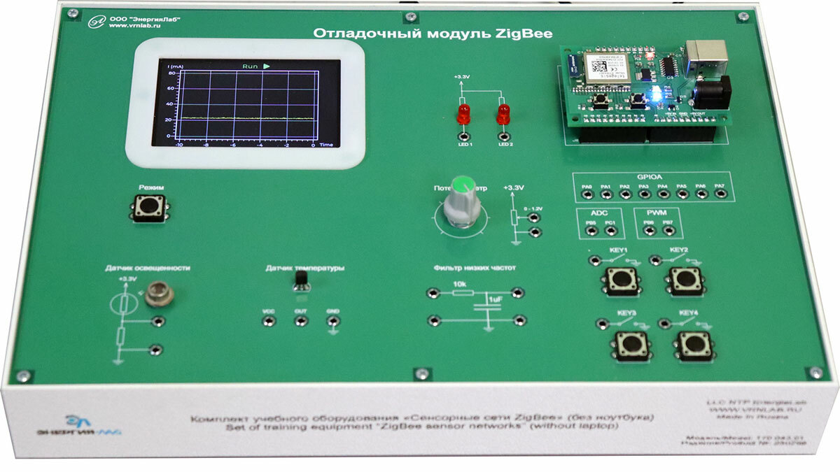 Оборудование предназначено для изучения принципов работы и возможностей сенсорных сетей ZigBee в рамках лабораторных работ, проводимых в высшем учебном заведении.