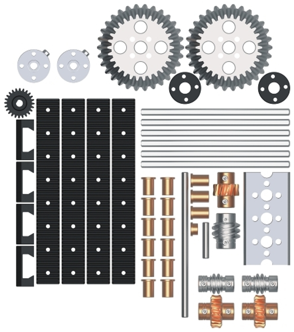 Комплект содержит множество усовершенствованных зубчатых передач любого назначения, выпускаемых для конструктора серии TETRIX® MAX. Комплект, насчитывающий в целом 48 элементов, позволяет учащимся вывести изучение передаточных механизмов и механизмов движения на совершенно новый уровень.