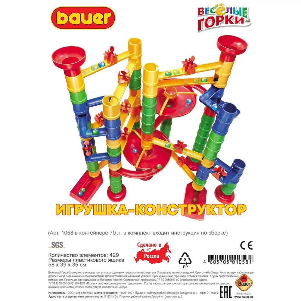 Конструктор Bauer «Веселые горки» это отечественный вариант знаменитой серии конструкторов горок для шариков (Marble Drop, Кугельбан). Увлекательная игра не оставит равнодушным не только ребенка, но и взрослого, ведь наблюдать за тем, как шарики катятся по разноцветной горке, можно почти бесконечно.
