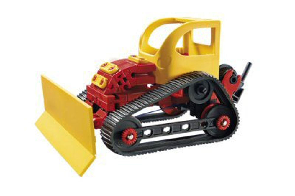 Соберите три модели гусеничного бульдозера с ручной лебедкой и ковшом из 85 деталей, которые входят в набор. Это могут быть сервисный подъемник, снегоуборочный трактор и бульдозер.
