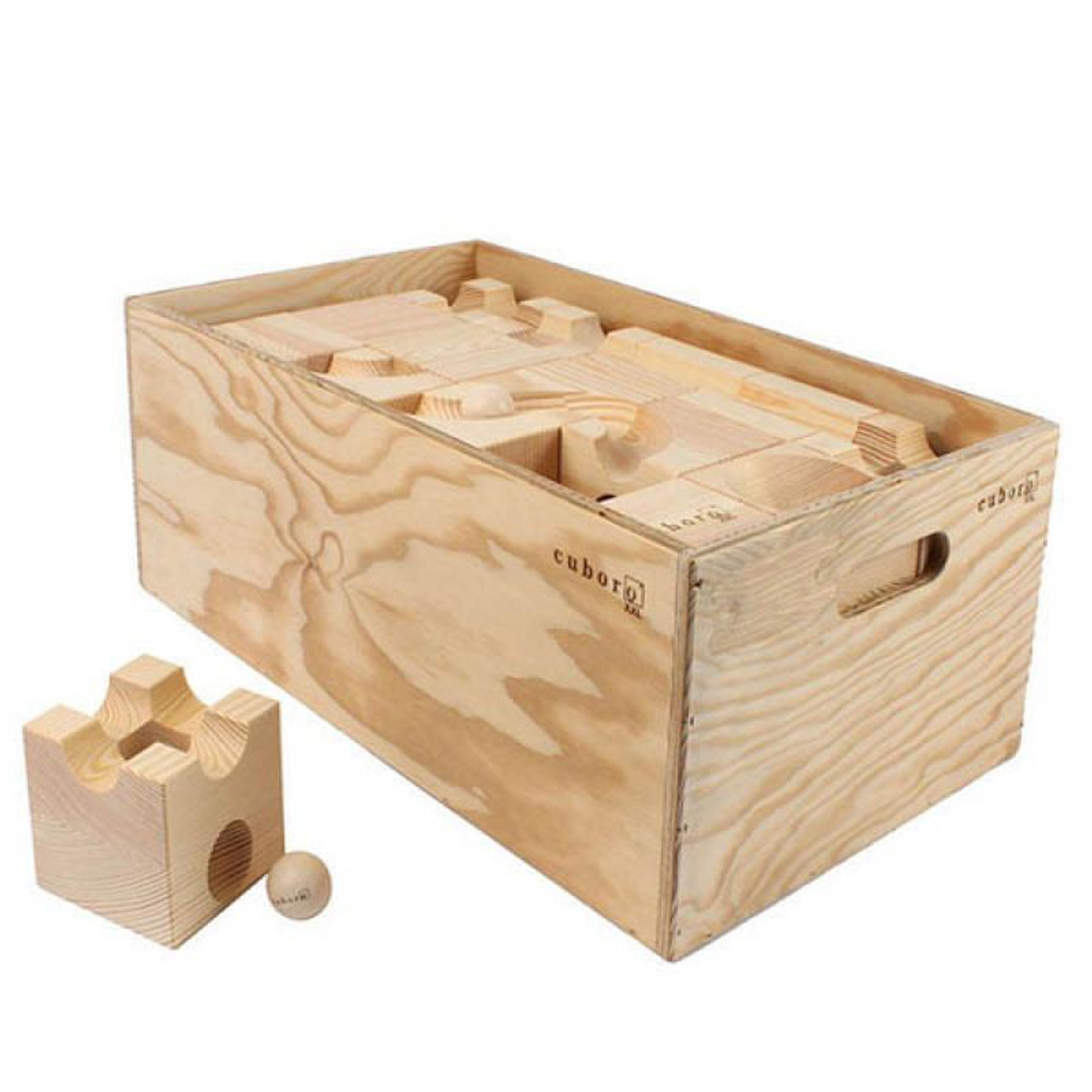 Cuboro набор XXL производится в основном для использования на выставках, игровых фестивалях, на игровых площадках и в других игровых зонах. Большой набор Cuboro XXL очень популярен среди людей с ограниченными возможностями и пожилых людей. Элементы из сосны впечатляют: запах леса, красивое строение дерева. После того, как возьмешь кубик в руки, больше не хочется возвращаться его.