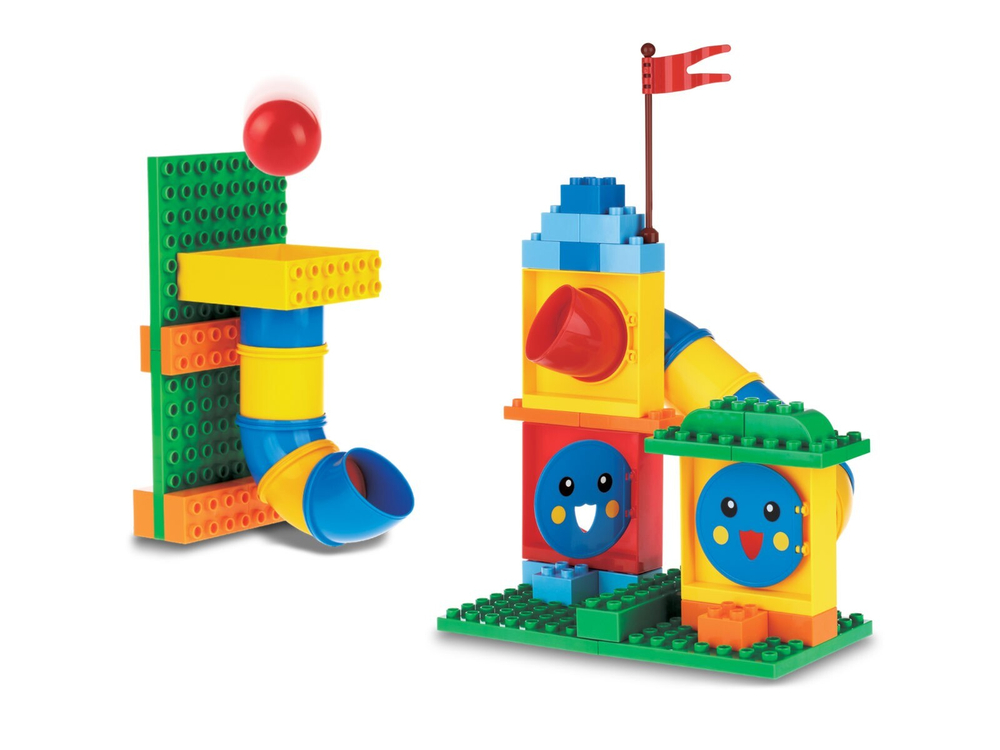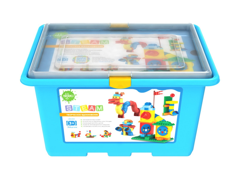 DIBO «Творческое вдохновение» – это 164 детали с уникальными деталями труб! Ваш ребенок сможет собрать настоящую детскую площадку с кораблем, драконом или удавом, робота со спусками для шаров вместо рук. Создавайте невероятные конструкции с переплетениями сети горок по которым так весело запускать шарики! Яркие кубики и закрытые каналы труб вдохновляют на бесконечное свободное конструирование.