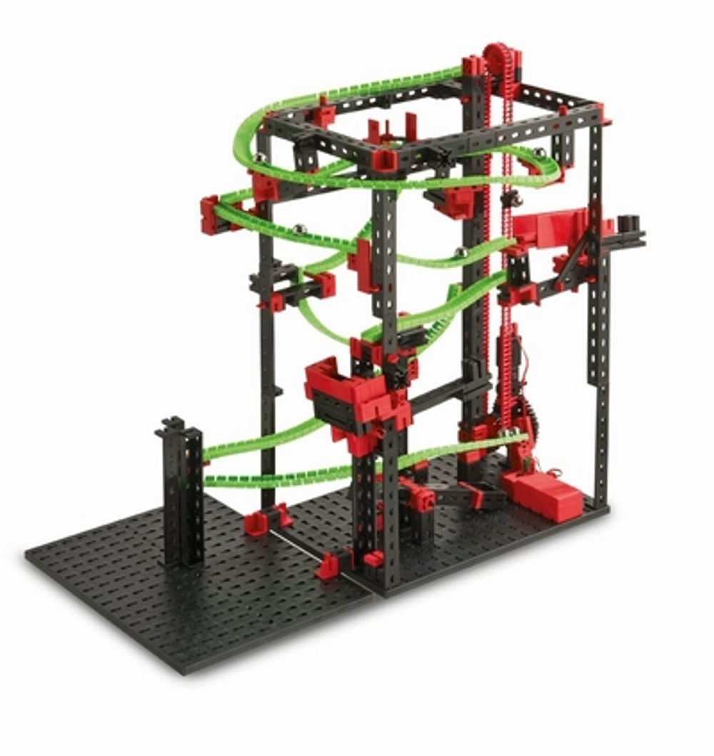 В некоторых моделях для перемещения шариков используется маленький подъемник с электрическим мотором, который входит в комплект конструктора.