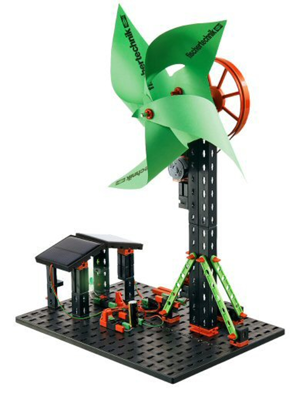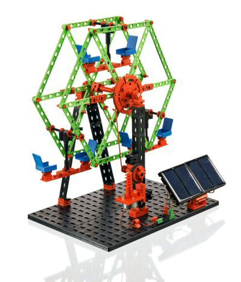 Конструктор fischertechnik Экологическая энергетика знакомит со способами производства, потребления и хранения энергии, получаемой из возобновляемых источников, таких как ветер, солнце и вода.