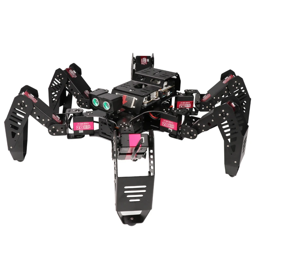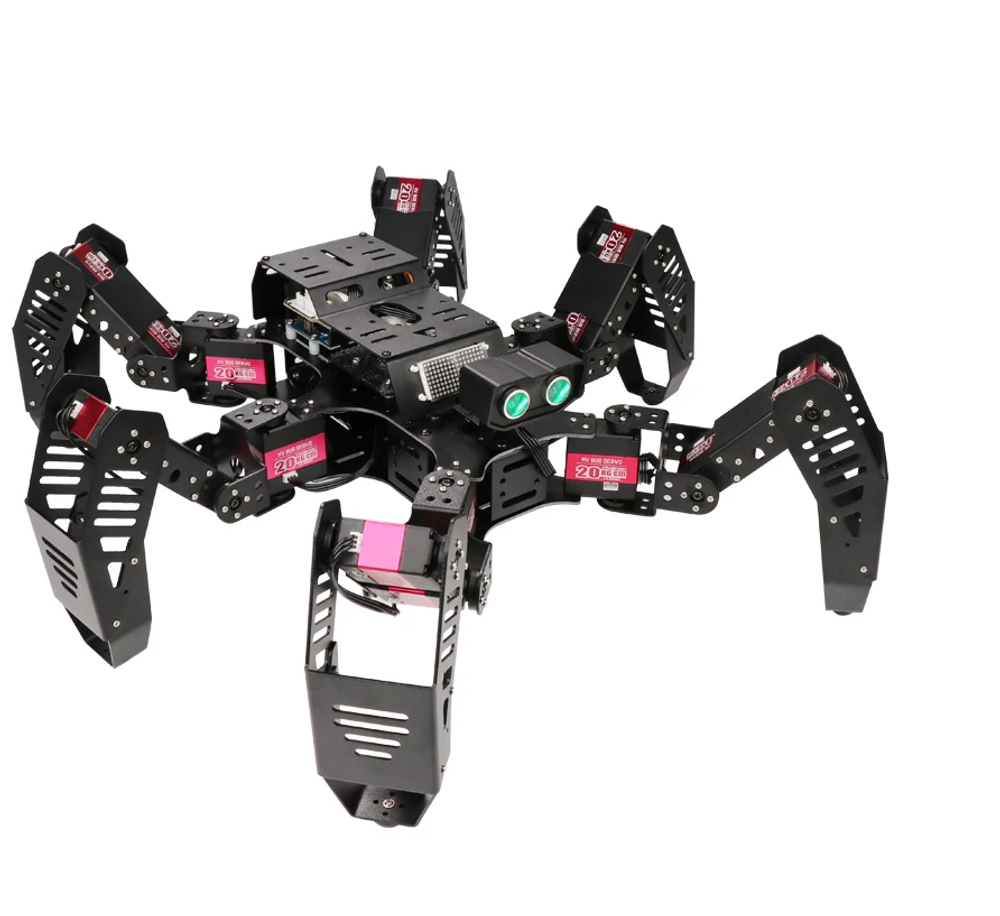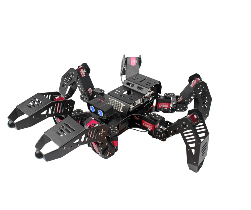 Робот-паук с контроллером, совместимым со средой Arduino. Программирование на Scratch и C++. Возможность перемещения, движения по линии, слежения за объектом, распознавания цветов и звуков и др.