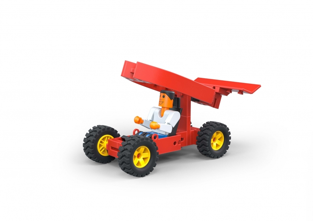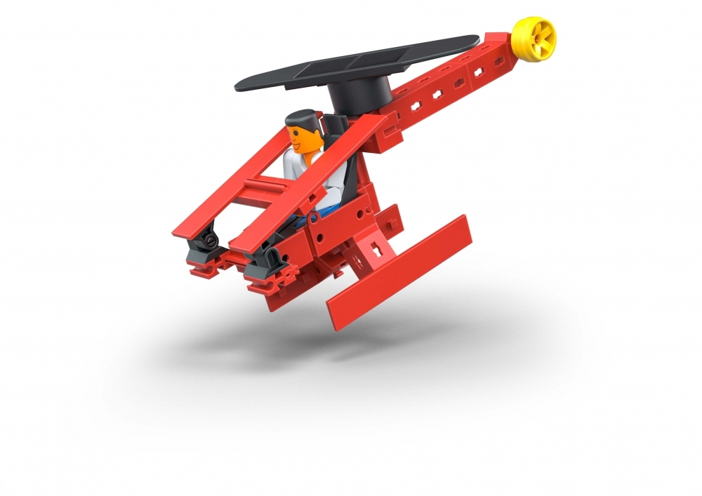Двенадцать различных транспортных средств – самолеты, трактора, и даже пожарная машина. В комплект входят солнечная батарея с встроенным электромотором и водяной насос, который подает воду под давлением в пожарный шланг! Фигурка человечка тоже в комплекте.