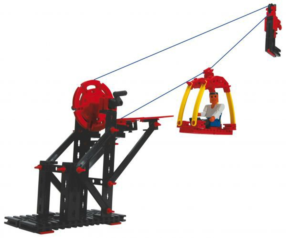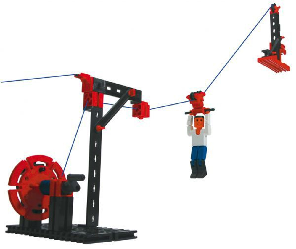 Из одного конструктора можно собрать подвесную канатную дорогу тремя способами и покатать маленького пассажира.
