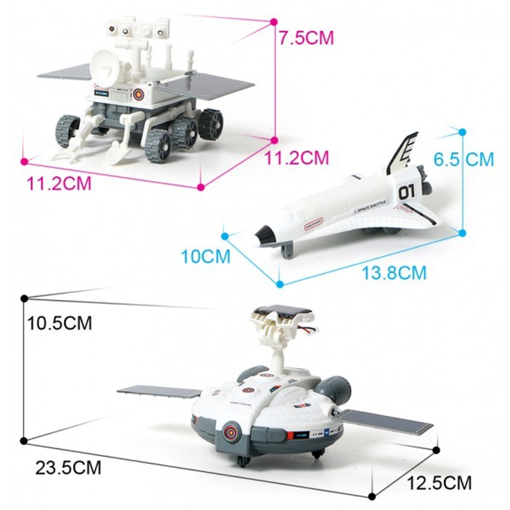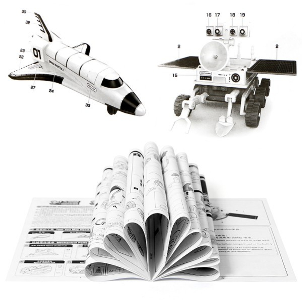 Из этого конструктора можно собрать настоящую лунную станцию! Блок солнечных батарей в комплекте приведет Ваши космолеты в движение. Сборка моделей - очень увлекательный процесс, однако Вам придется включить логику и воображение. 3 рабочих моделей: космическая станция, шатл, луноход.