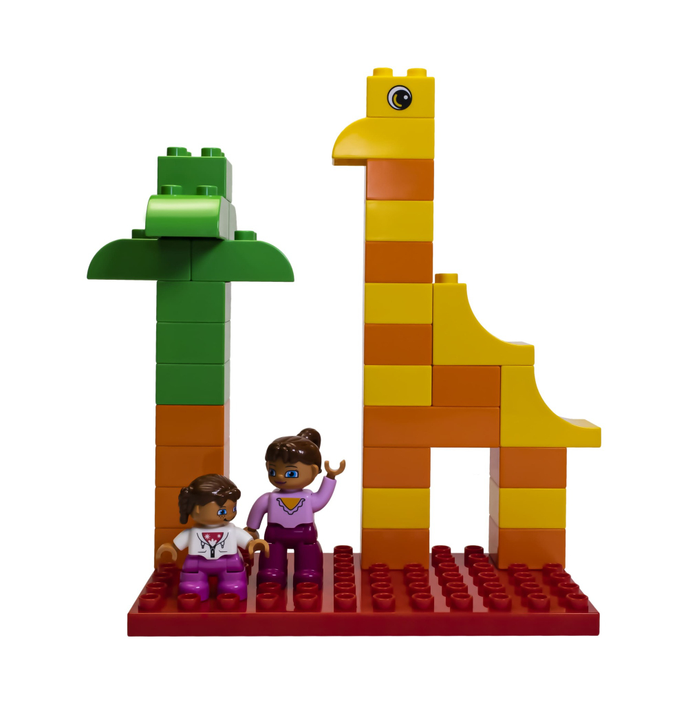 зоопарк с вольерами из заборчиков, подъёмный кран с крюком или пожарную машину с лестницей.
