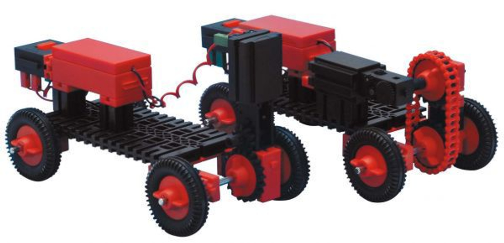 Маленький электродвигатель с переключателем, которые входят в комплект, позволят проверить механизмы в действии.
