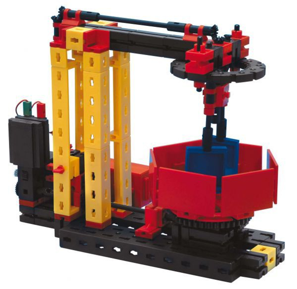 При помощи инструкции на русском языке и 500 деталей ребенок сможет собрать 30 различных моделей: лебедки, мосты, подъемники, коробка передач, редукторы и другие механизмы.