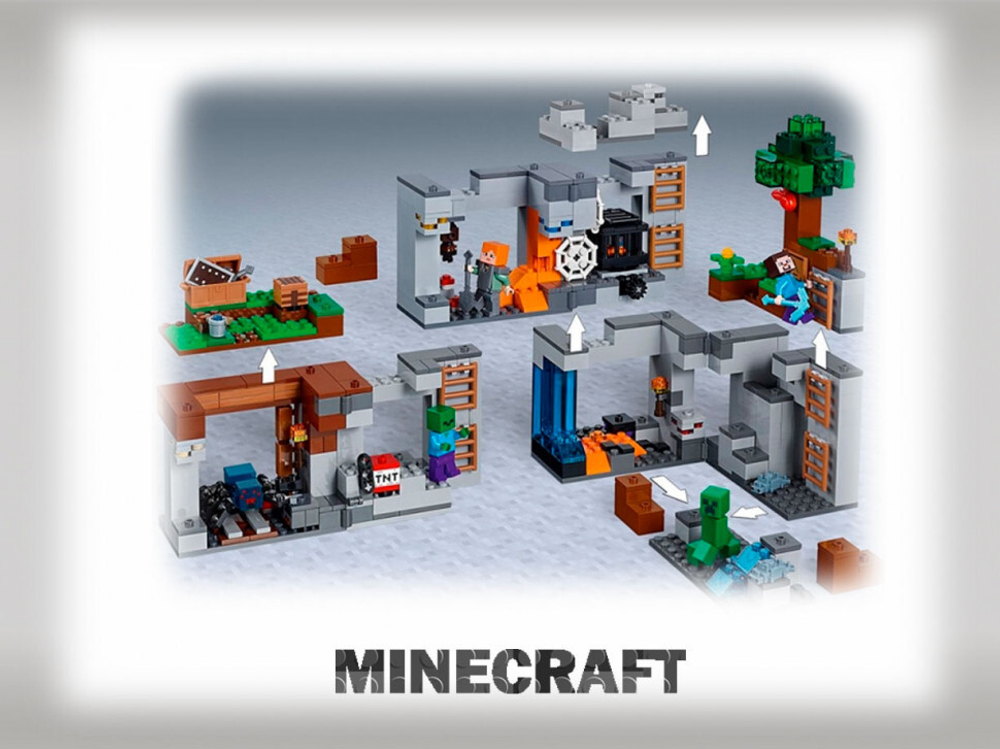 Пластиковый конструктор Minecraft «Приключения в шахтах» по популярной игре Minecraft позволит ребенку перенестись в таинственный мир из множества кубических блоков. Немного усилий и максимум терпения и игровая зона будет готова!