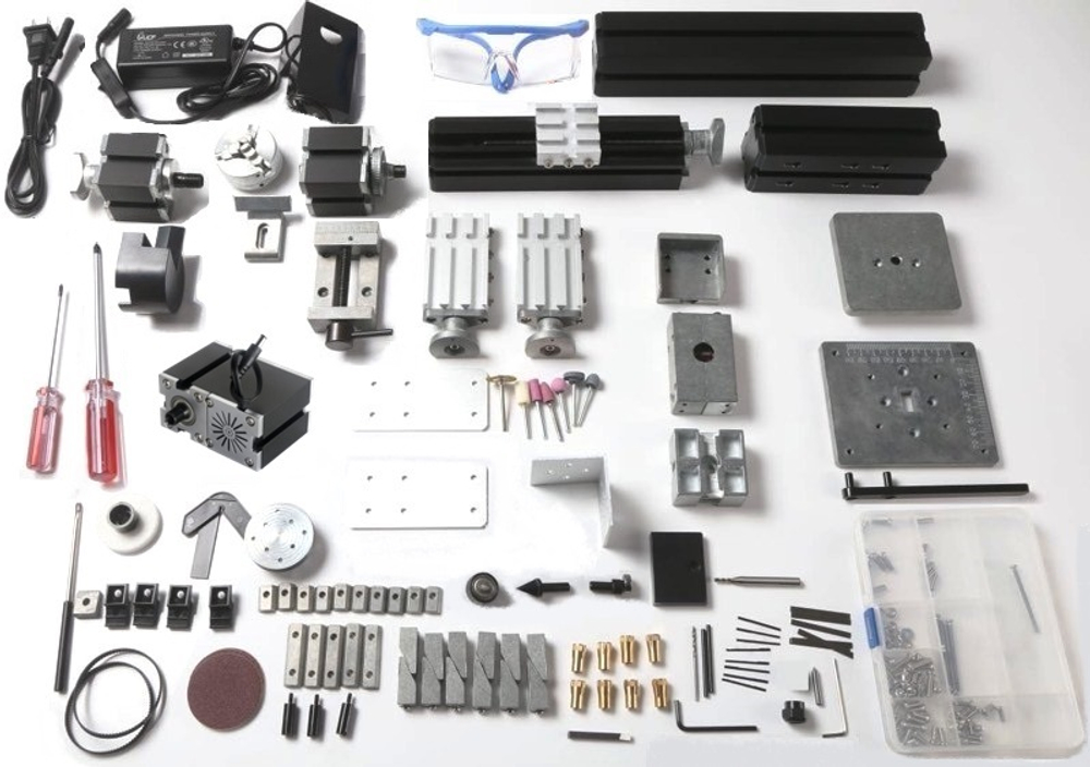 Конструктор состоит из готовых модульных блоков (металл), на основании которых собираются последовательно различные станки: