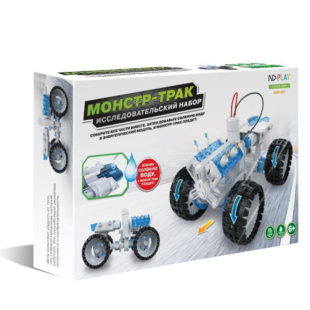 Роботы на энергии солёной воды несомненно обрадуют каждого ребенка! Монстр-трак ездит на простой соленой воде. Игрушка наглядно демонстрирует возможность получения энергии из соленой воды. Игрушка приводится в движение при помощи специального топливного элемента на растворе соли. Все что потребуется – это легко и просто собрать модель из конструктора и капнуть немного соленой воды в специальный отсек.