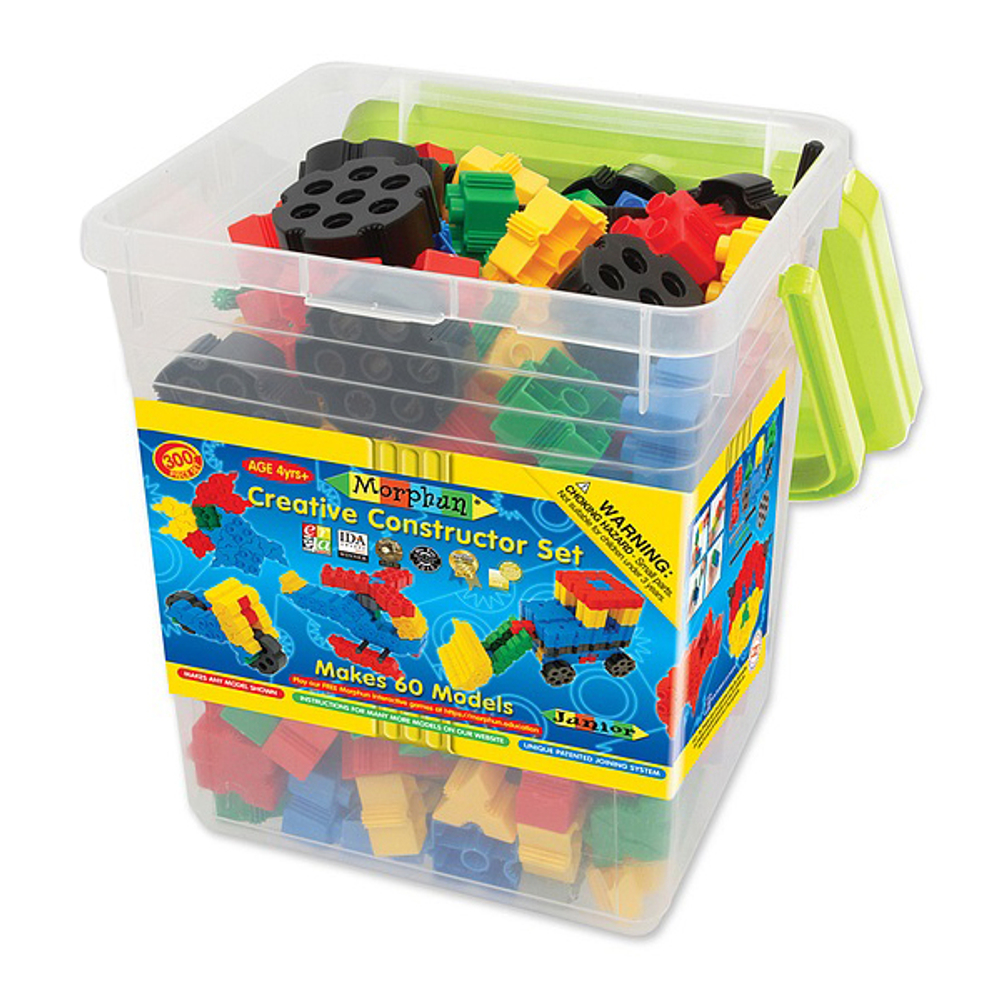 Конструктор Morphun "Креатив" упакован в ударопрочный пластиковый короб с крышкой и удобной ручкой для переноски и хранения деталей.