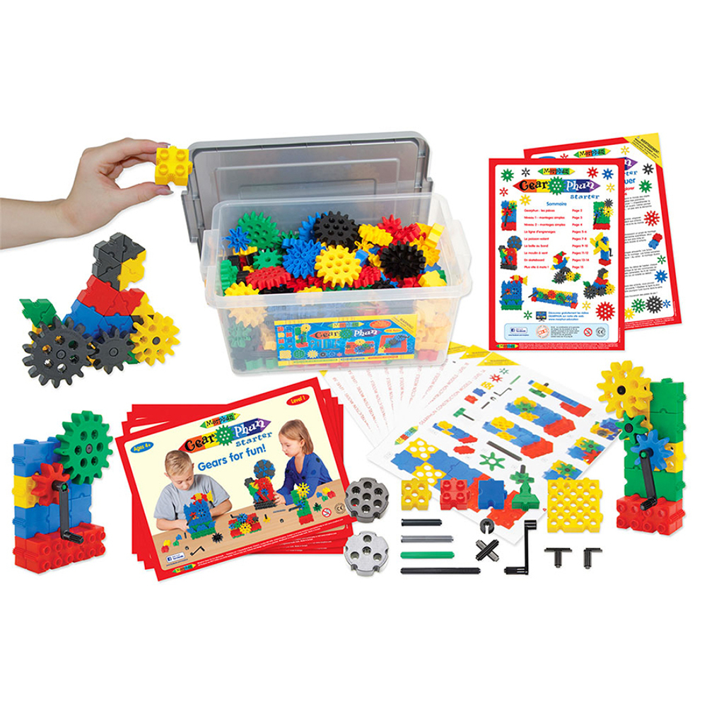 – Конструктор «STEM (Шестеренки) Gearphun Starter» 400 деталей упакован в пластиковый короб для хранения комплектующих, с закрывающейся на фиксаторы крышкой.