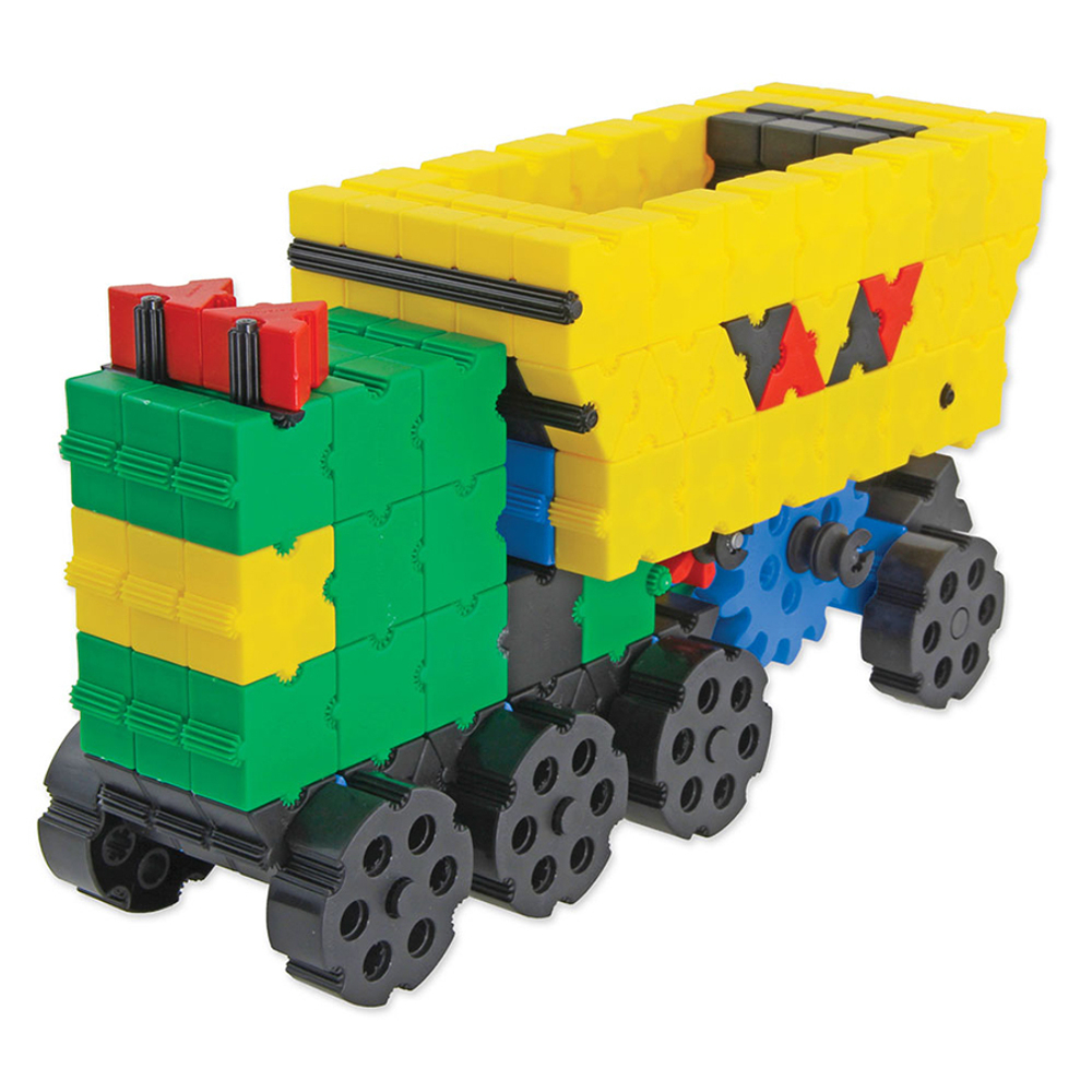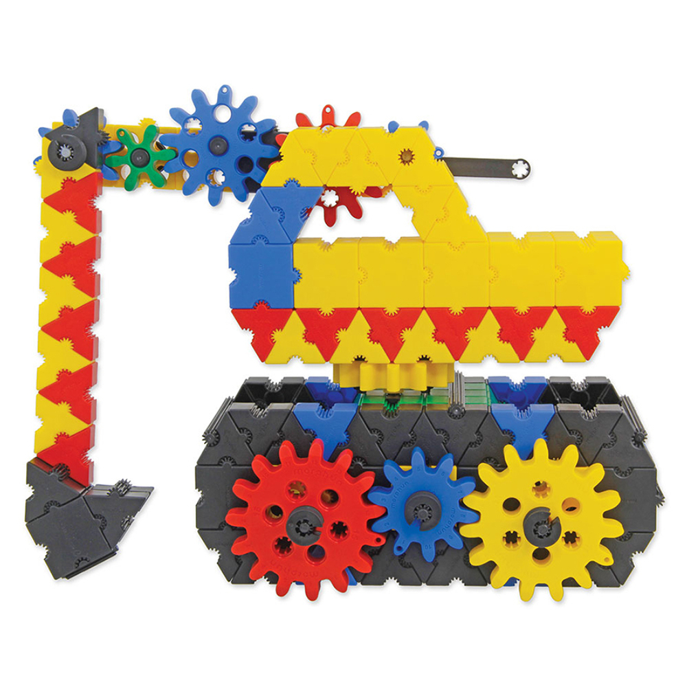 В составе конструктора 400 деталей с уникальным, запатентованным способом соединения деталей, в том числе детали 7 разных форм, размеров, соединительные элементы 9-и разных форм и размеров, зубчатые колеса 5-и разных размеров, предоставят практически неограниченные возможности для развития фантазии ребенка при сборке моделей с зубчатыми передачами. С их помощью игрушечные экскаваторы, поезда, краны будут двигаться, словно настоящие!