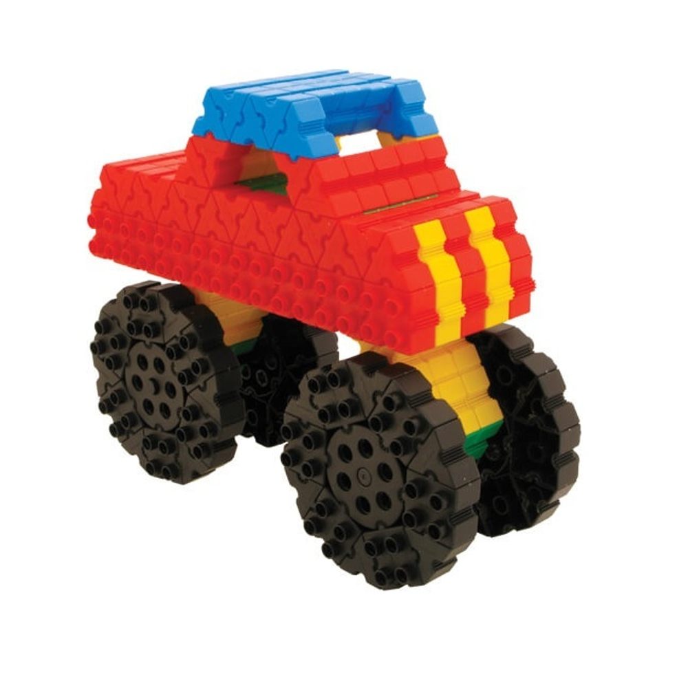 Конструктор Morphun Jumbo Vehicles Set упакован в ударопрочный прозрачный пластиковый короб с крышкой и удобной ручкой для переноски и хранения деталей.