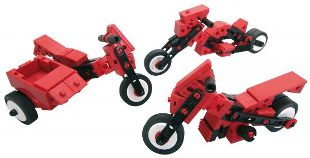 Конструктор для детей от 7 лет. Три модели мотоцикла, которые вы соберете, подойдут для всех - с коляской для двоих, групповой и мотоцикл на одного.