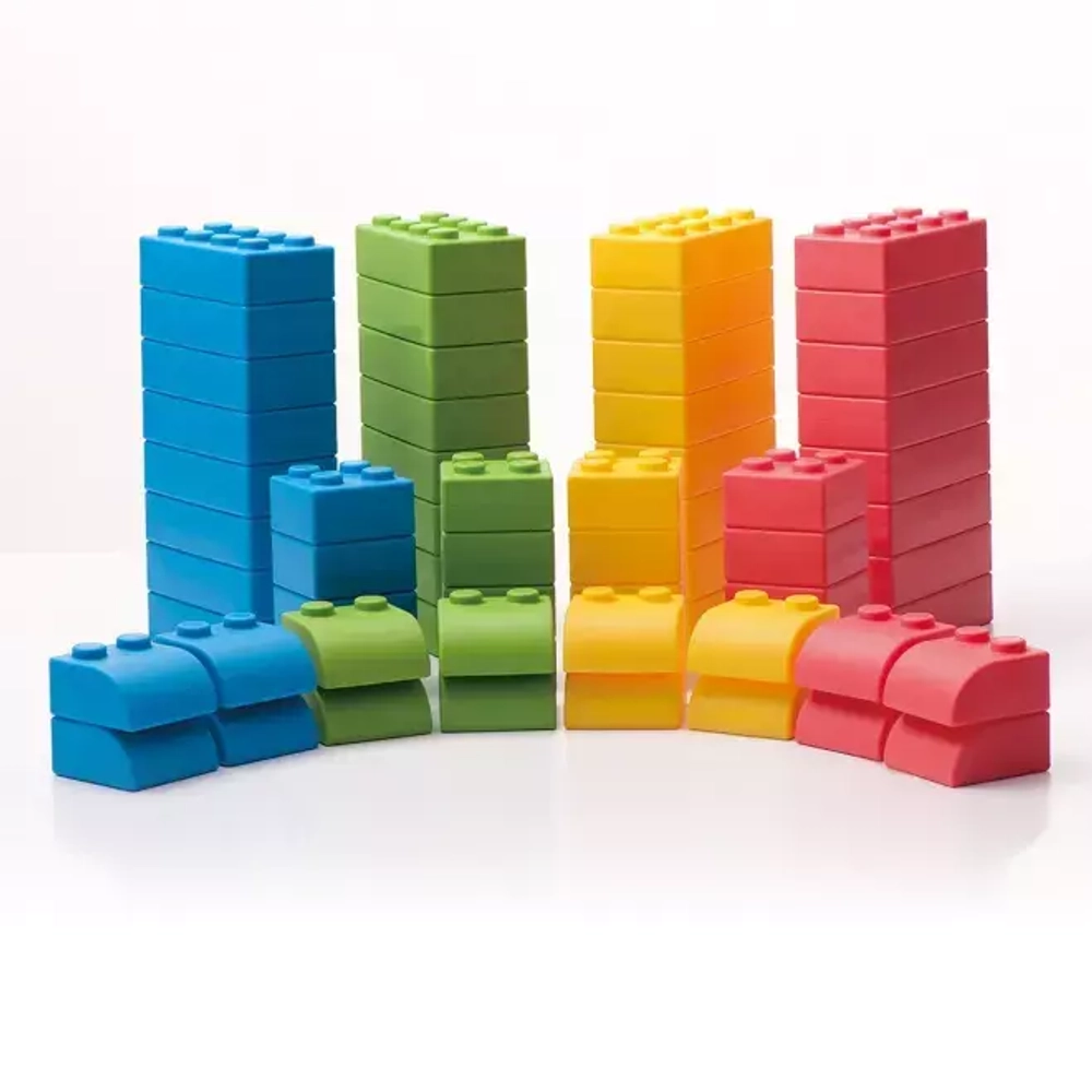 Строительные кирпичики устроены так, что их легко держать в руках дяже для самых маленьких детей.