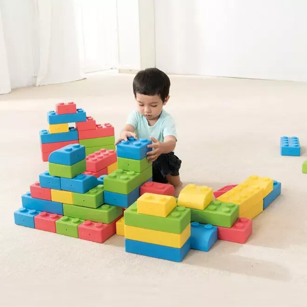 Напольный конструктор из мягких блоков "Элтик" предлагает бесконечные возможности для творчества. Изготовлен из нетоксичного и мягкого материала, он легкий и безопасный. Благодаря большому размеру блоков, можно построить масштабную конструкцию.