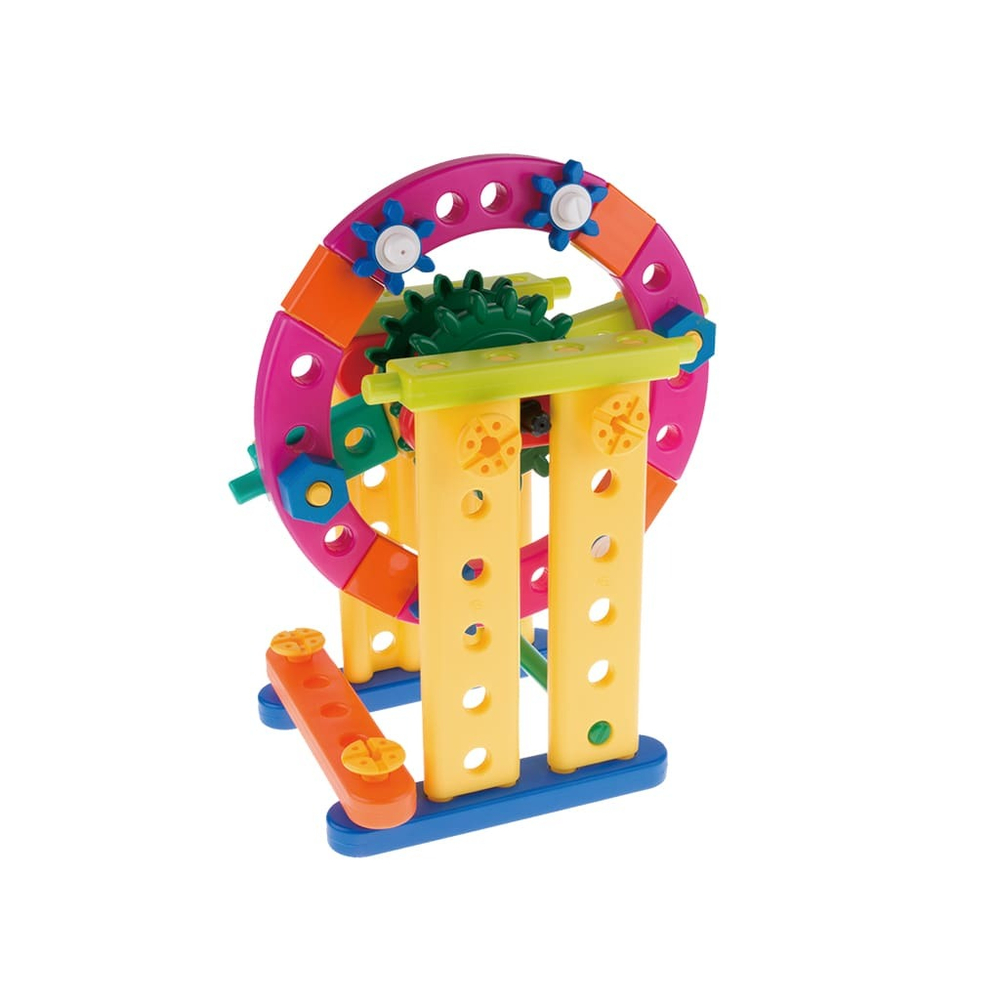 Конструктор "Парк аттракционов " от Gigo предназначен для развития навыков конструирования для детей от 3 лет.